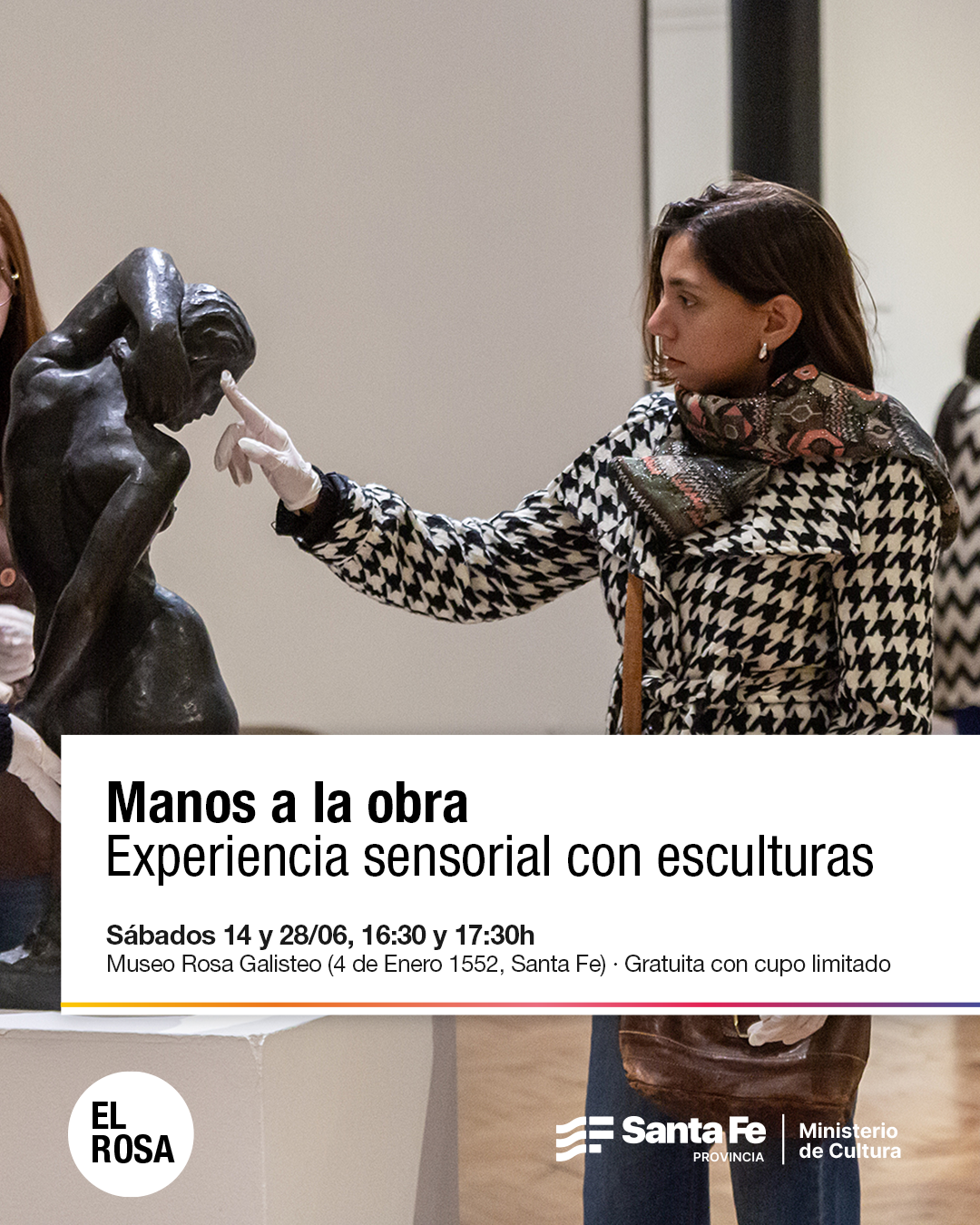 Se llevará a cabo en el Museo Provincial de Bellas Artes “Rosa Galisteo de Rodríguez” la activación “Manos a la obra”, una experiencia sensorial que propone un recorrido accesible por esculturas de su colección patrimonial. La actividad se realizará el sábado 31 de mayo, en dos turnos: a las 16:30 h y a las 17:30 h y se replicará los días sábados 14 y 28 de junio. La propuesta es gratuita, con cupo limitado por orden de llegada (grupos de hasta 20 personas).