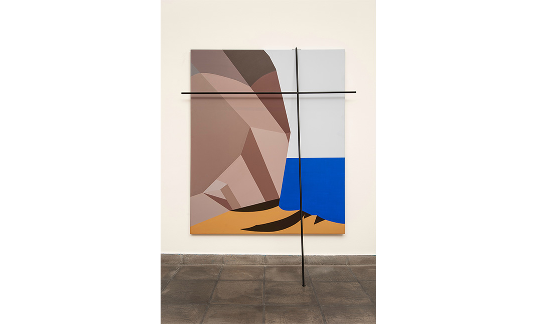 En estas obras investigo la espacialidad de la pintura tanto en su representación bidimensional como en el modo en que se dispone en el espacio, a través de estrategias visuales simples. La referencia al paisaje abre un terreno de ambigüedad formal y simbólica a partir de la presencia de estructuras de hierro que replican y refuerzan la línea de horizonte, al mismo tiempo que evocan otras figuras.