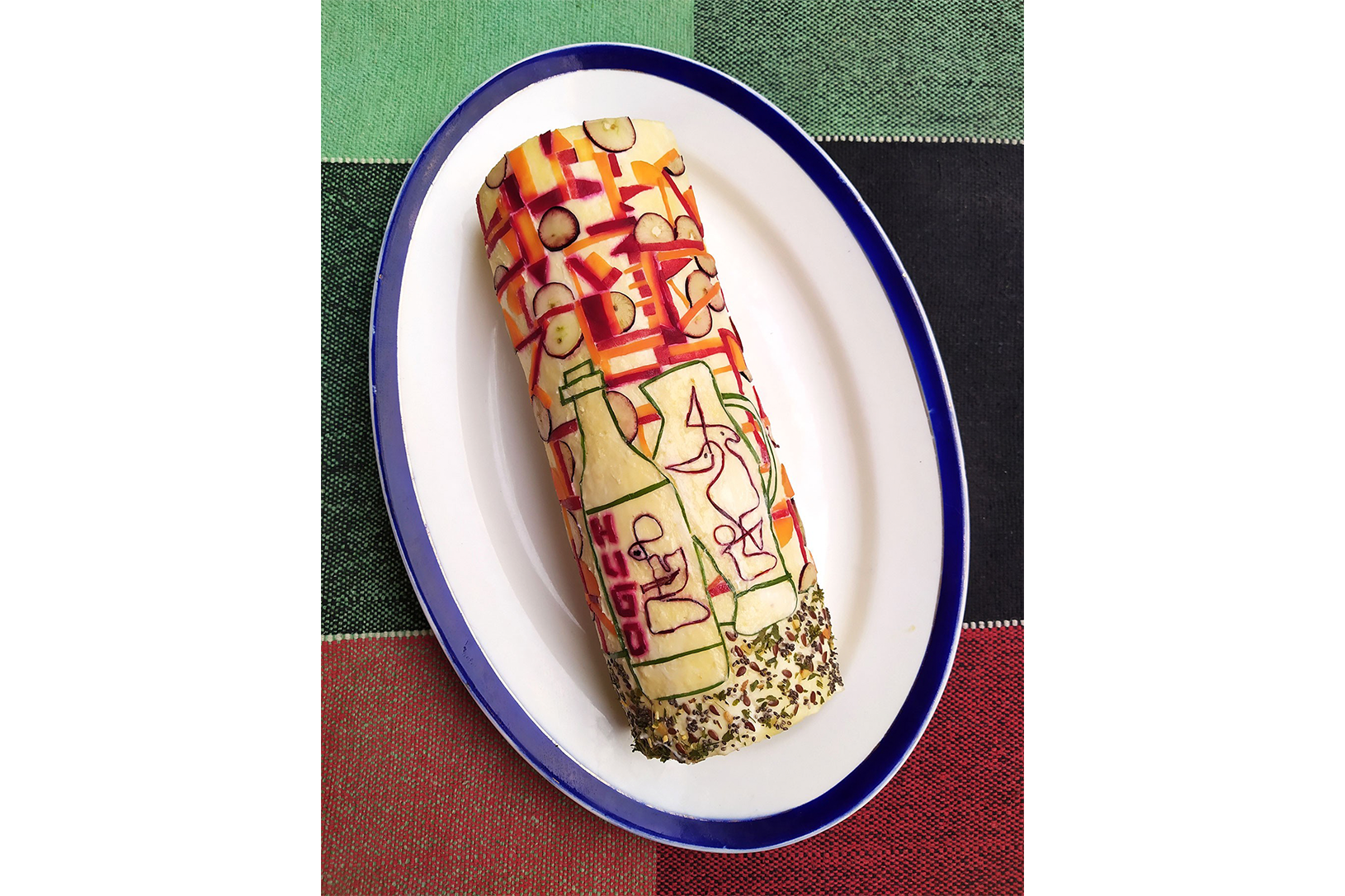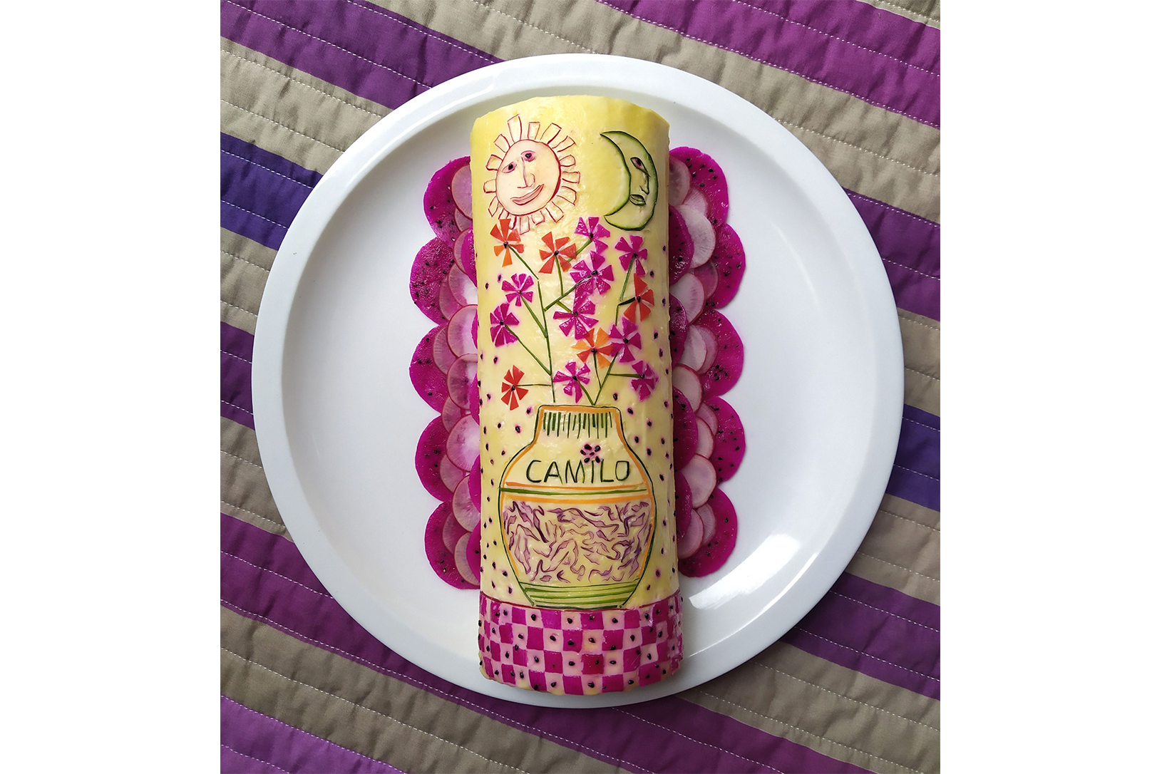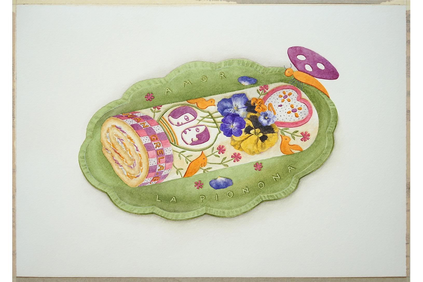 Ana Wandzik dice acerca de la Pionona: “Lxs piononxs de la navidad argentina saludan con sus mayonesas y nueces a la historia del arte en un beso espiralado a mano. De entre los pliegues y capas vivientes de estas Piononas emerge en susurro esa pregunta existencial que nos atraviesa desde que el arte es arte: ¿qué hacemos con lxs maestrxs?”